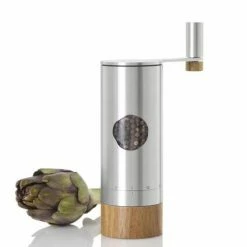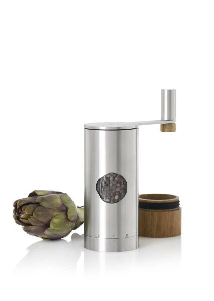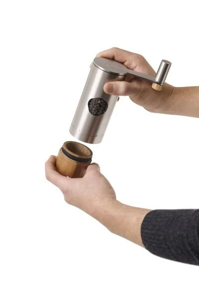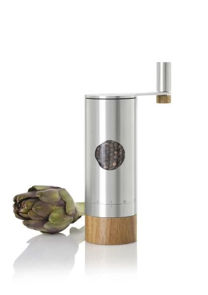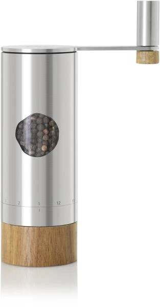 Das Planet+® Getriebe mit einer 2:1 Untersetzung arbeitet nahezu ruckelfrei und das Zerkleinern des Mahlguts, selbst von härtestem Salz, fühlt sich angenehm leicht und sanft an. AdHoc PowerMill lässt sich durch die gut greifbare Kurbel mit dem beweglich gelagerten Knauf aus Edelstahl und Roteichenholz angenehm greifen und drehen. Der aufgesteckte Auffang-Container aus Akazienholz sammelt das gemahlene Gewürz und lässt sich leicht abziehen. So kann entweder auf Vorrat oder bei Bedarf direkt auf das zu würzende Gericht gemahlen werden. Der Korpus aus Edelstahl, hat ein Sichtfenster aus Acryl, das einen Blick auf das verwendete Gewürz erlaubt. Zum einfachen Nachfüllen lässt sich der Getriebekopf gut abziehen. PowerMill – der Turbo für ein würziges Mahlerlebnis.