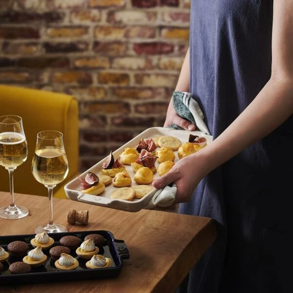 Die Vorpeisenplatte von Appolia eignet sich nicht nur für Häppchen oder umgestürzte Kuchen. Dank dem emaillierten Keramik kann sie zum Zubereiten, Garen und Servieren verwendet werden. Zudem ist sie kratz- und tiefkühlfest. Das schlichte Design ist schick, aber dennoch praktisch und nach dem Kochen oder Backen leicht im Geschirrspüler zu reinigen.