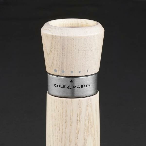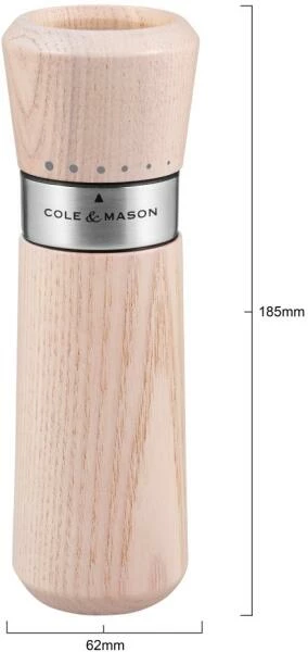 Die Lyndhurst Pfeffermühle von Cole & Mason ist die perfekte Mischung aus stilvoller Raffinesse und überlegener Leistung. Hergestellt aus nachhaltig gewonnenem Eschenholz, das mit einem nordischen Weissfleck versehen ist, zeigt die natürliche Schönheit der Holzmaserung. Es ist eine schöne Ergänzung für jedes Zuhause. Als Teil der Cole & Mason Gourmet Precision-Reihe bietet es Ihnen das Vertrauen, den Geschmack jeder Mahlzeit durch professionelles Würzen zu verbessern. Die Mühle verfügt über 6 voreingestellte Mahlstufen von fein bis grob, die über den Edelstahlring eingestellt werden können, die sich bewährt haben, um sicherzustellen, dass Sie immer das Beste aus Ihrer Mühle und das Beste aus Ihren Mahlzeiten herausholen. Es ist mit hochwertigen schwarzen Pfefferkörnern aus Vietnam gefüllt, sodass Sie sie ab dem Moment, in dem Sie sie erhalten, verwenden können. Diese Umkehrmühle hält Ihre Arbeitsfläche und den Tisch sauber. Der Mechanismus befindet sich oben in der Mühle, welcher unter der Edelstahlscheibe verborgen ist. Das Gourmet Precision+ Pfeffermahlwerk besteht aus gehärtetem Karbonstahl, der die Pfefferkörner schält, anstatt sie zu zerdrücken, sodass sie ihre natürlichen Öle freisetzen können, die Ihnen mit jeder Umdrehung mehr Geschmack verleihen.