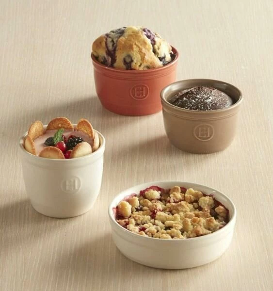 Emile Henry Töpfchen Nr. 8 in fusain. Besonders hoch für die Zubereitung für Soufflés, Panna Cotta oder Muffins.
