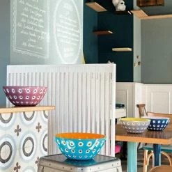 Die Serie Le Murrine wurde von Pio und Tito Toso für Guzzini entworfen. Die Schüssel wurde aus der exklusiven Dreifarben-Technologie 3 Color Tech aus Acrylglas hergestellt, was Objekte mit einzigartigen Effekten erzeugt. Inspiriert wurde die Serie vom einzigartigen Muranoglas in Venedig, Italien. Diese extravagante Schüssel ist aufgrund seines raffinierten Designs nicht nur als dekorativer Ziergegenstand einsetzbar, sondern kann auch zum ansprechenden Servieren von Speisen auf dem Tisch verwendet werden. Zusätzlich ist die Schüssel lebensmittelrecht, BPA-frei und spülmaschinenfest.