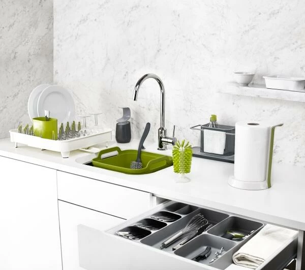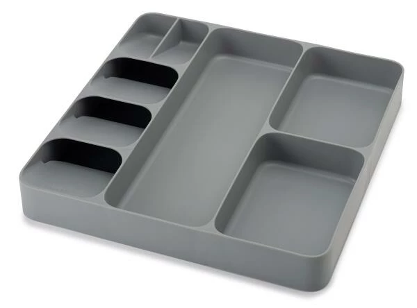Joseph Joseph Besteckkasten DrawerStore groß in grau. Der clevere Organizer mit fünf übereinander geordneten Fächern sowie drei tiefseitigen Fächern. Zur Aufbewahrung von Besteck und Küchenwerkzeugen.