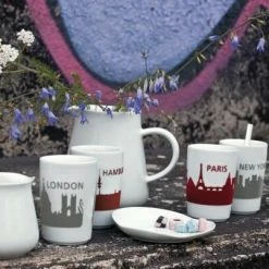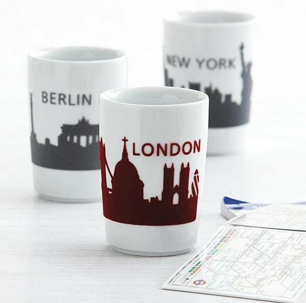 Kahla Five Senses touch! Maxi-Becher Jena in rot. Skylines erscheinen als erhabene, samtweiche Beschichtung auf dem Five Senses Maxi-Becher und schaffen ein besonderes haptisches Erlebnis.