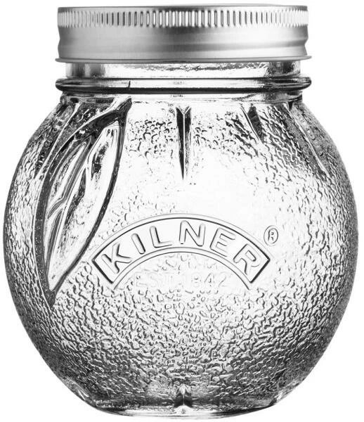 Kilner Einkochglas in Form einer Frucht ist mit 2-teiligem Metall-Schraubdeckel, einem austauschbaren Vakuumverschluss und einem Metallschraubband zur Sicherung des Verschlusses ausgestattet.