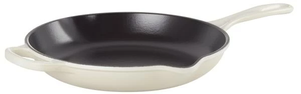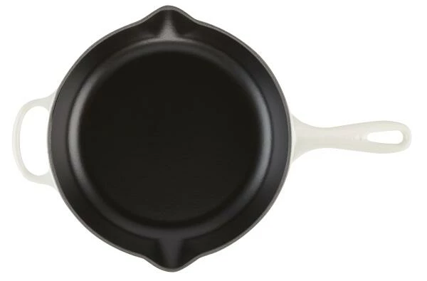 Le Creuset Brat- und Servierpfanne Signature aus Gusseisen in meringue. Die Le Creuset Brat- und Servierpfanne eignet sich für scharfes Anbraten oder zum Überbacken von Gemüsegerichten im Ofen. Da die ergonomischen Griffe aus Gusseisen gefertigt sind, kann die Pfanne problemlos im Backofen zum Einsatz kommen. Beidseitige Ausgüsse helfen überschüssige Flüssigkeiten oder Saucen platziert um- bzw. auszuschütten.