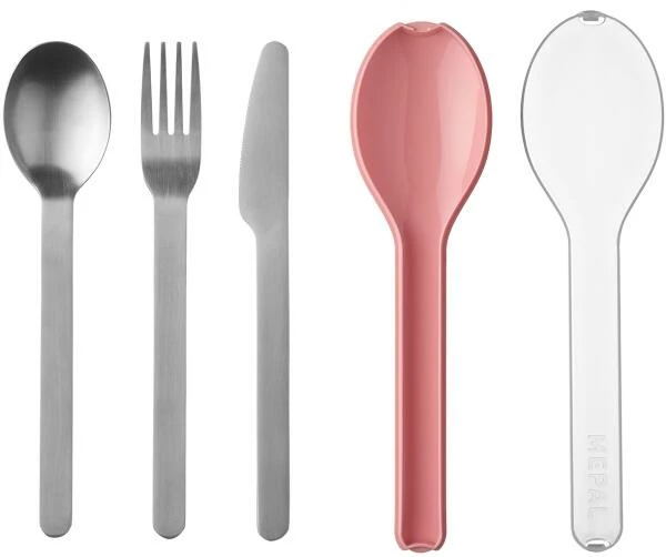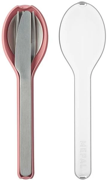 3-teiliges Besteck-Set in der Farbe Nordic Pink. Das stilvolle und praktische Ellipse Besteckset von Mepal enthält ein Messer, eine Gabel und einen Löffel, kompakt und geschützt in einer wiederverwendbaren Hülle. Sehr praktisch für unterwegs! Das Besteck ist aus rostfreiem Edelstahl hergestellt und kann nach Gebrauch ganz einfach in der Spülmaschine gereinigt werden.