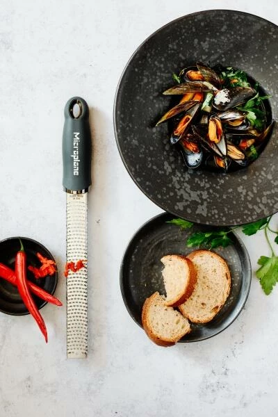 Das Reibergebnis ist sehr fein und ideal für alles, was fein gerieben werden soll. Zitrusfrüchten lassen sich besonders gut abreiben. Auch Käse und Gewürze, wie etwa Knoblauch, Ingwer und Muskat, lassen sich bestens zerkleinern. Geformt wie eine Feile wird die Microplane Reibe Premium von Profi- und Hobbyköch*innen gleichermaßen geschätzt.