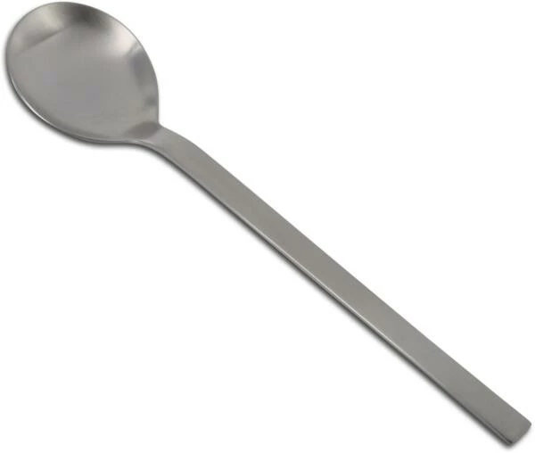 Der schlichte und dennoch edle Löffel der Mono A Serie ist aus matt gebürstetem Edelstahl 18/10, misst 18,4 cm und ist spülmaschinengeignet.
