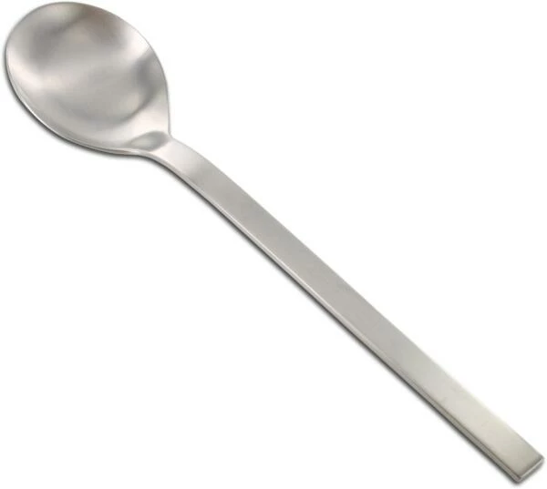 Der schlicht und dennoch edle Löffel der Mono A Serie ist aus matt gebürstetem Edelstahl 18/10, misst 21,3 cm und ist spülmaschinengeignet.