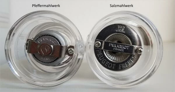 Pfeffermühlen. Die gegenläufig, trichterförmig angeordneten Zähne ziehen den Pfeffer nach unten und mahlen, je nach Bedarf, fein oder grob. Das Markenzeichen des Löwen von 1850 symbolisiert die einzigartige Qualität der Peugeot Mahlwerke: kräftige Zähne, geschmeidige Klingen und schnelles Schneiden. Aufgrund der außergewöhnlich hohen Qualität der Peugeot Mahlwerke gewähren wir bei sachgemäßem Gebrauch eine Funktionsgarantie von 25 Jahren auf die Mahlwerke von Peugeot.