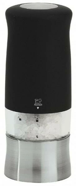 Salzmühle Zephir elektrisch mit Soft-Touch in schwarz. Mahlen mit hohem Komfort und der gewohnten Schärfe eines PEUGEOT Mahlwerks. Mit den elektrischen Mühlen von PEUGEOT läßt sich das Mahlgut optimal dosieren.