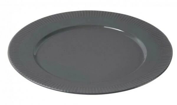 Pillivuyt Teller flach Eclectique Bordeaux in stahlgrau. Die Serie Eclectique wurde im 19. Jahrhundert entwickelt und präsentiert sich in weiß und eleganten Grautönen, die in Kombination miteinander besonders gut zur Geltung kommen.