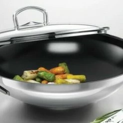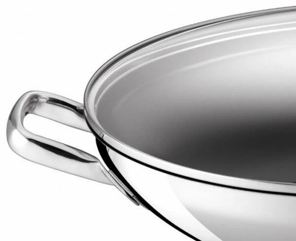 - Material: Wokkörper und Griffe aus Edelstahl Rostfrei 18/10, mit Glasdeckel