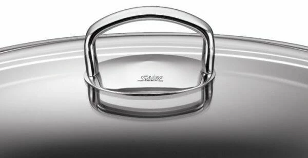 Der Sichtkochdeckel mit Edelstahleinfassung ermöglicht ein wasserarmes und energiesparendes Garen. Backofenfeste, ergonomisch geformte Griffe aus poliertem Edelstahl. Rundum verkapselter