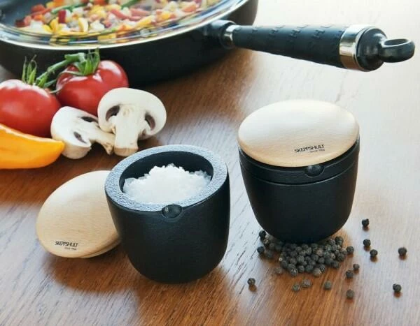 Die Skeppshult Salz- und Kräuterschale Swing ist in Zusammenarbeit mit der dänischen Designfirma Carl & Carl (Kopenhagen) entworfen worden. Swing hat ein weiches abgerundetes Design, welches einen herrlichen Kontrast zu dem soliden Gusseisen hervorbringt. Durch den abgerundeten Boden bringt Swing S & P wortwörtlich Schwung auf den gedeckten Tisch.