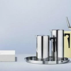 1967 wurde die Kaffeekanne von Arne Jacobsen entworfen als eine der ersten Stücke der Cylinda-Line. Die Kanne zeichnet sich besonders durch ihren schlichtes, zeitloses und dennoch modernes Design aus. Durch ihre schöne Form wird das Servieren von Kaffee oder Kakao mit der skulpturalen Kanne zu einem besonderen Augenschmaus.