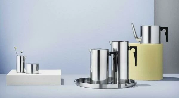 Stelton, die Arne Jacobsen entworfen hat. Die Serie ist bekannt für ihre Produkte, die durch eine gradlinige, zylindrische Form bestechen und über außergewöhnlich geformte Griffe aus Kunststoff und eine gebürstete Stahloberfläche verfügen. Die Cylinda-Line wurde schnell zum Klassiker von Stelton. 1967 wurde die Serie zudem mit dem ID Preis ausgezeichnet.