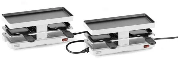Raclette Twinboard Set in weiß. Das Raclette- und Tischgrill-Set, besteht aus einem Basis- und einem Erweiterungsgerät. Es ist für bis zu vier Personen geeignet und kann noch erweitert werden.