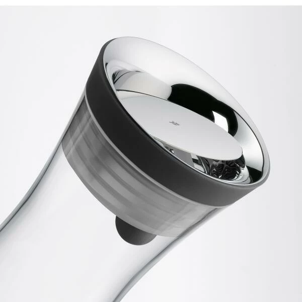 WMF bietet Wasserkaraffen in verschiedenen Größen an, gefertigt aus modernen Materialien wie Glas, mundgeblasenem Kristallglas und poliertem Cromargan®. Zu den formschönen Gefäßen gehören ein schlichter Stopfen aus Kork oder ein Verschluss mit ausgeklügelter Technik. Der CloseUp-Verschluss öffnet und schließt mithilfe eines Kippmechanismus automatisch, und ein integriertes Sieb hält Eiswürfel und Zitronenscheiben beim Einschenken in der Karaffe zurück. Wasserkaraffen von WMF passen in die Getränkefächer handelsüblicher Kühlschränke.